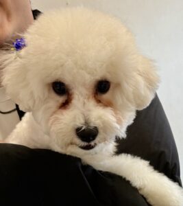 4ケ月の大人しくて甘えん坊な可愛いワンちゃんで男の子のこまちゃんです。シャンプー前にカットの希望を伺い仕上がりは飼い主様と一緒に写真