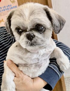 16歳の大人しくて甘えん坊な可愛いワンちゃんで男の子のギンちゃんです。シャンプー前に希望を伺って仕上がりは飼い主様と一緒に写真